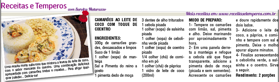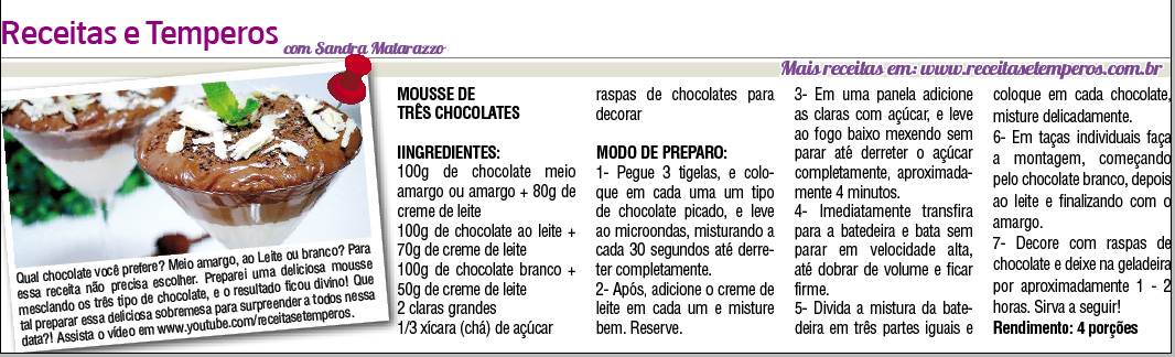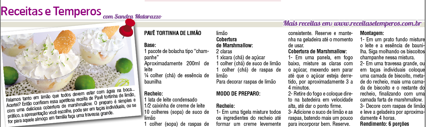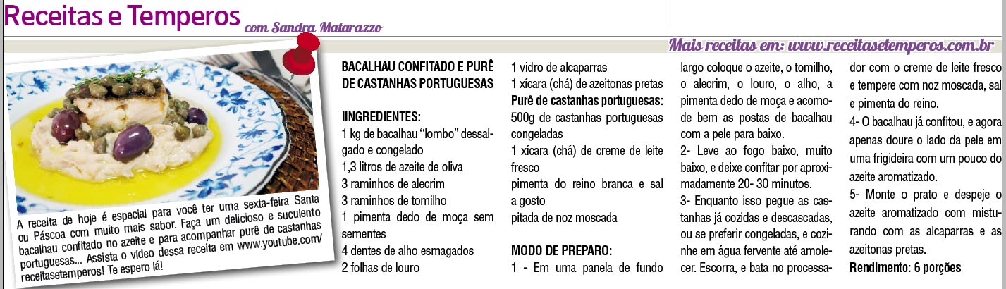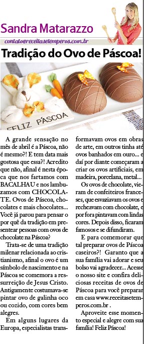 Confira as deliciosas receitas criadas pelo Receitas e Temperos com a chef Sandra Matarazzo para a coluna semanal de gastronomia no jornal Visão Oeste SP neste mês de ABRIL.