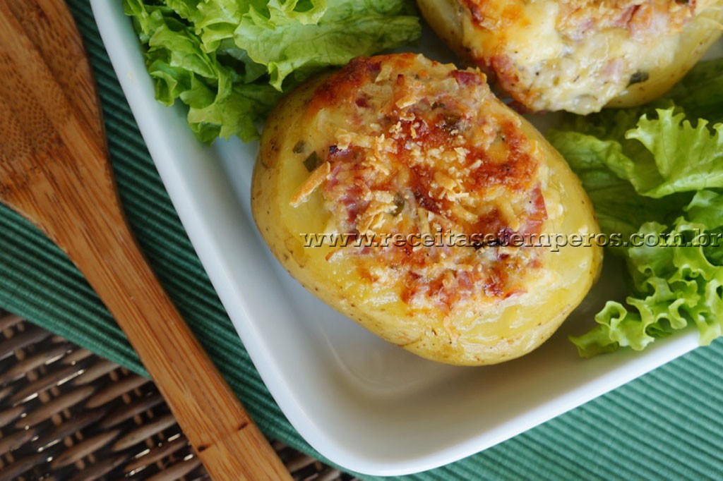 Batata recheada é um prato bem famoso na minha família! Essa receita eu aprendi ainda quando eu era criança, era a sensação nos almoços familiares aos domingos, é uma ótima sugestão de acompanhamento ou até mesmo de prato principal. É um prato muito saboroso, prático e versátil.