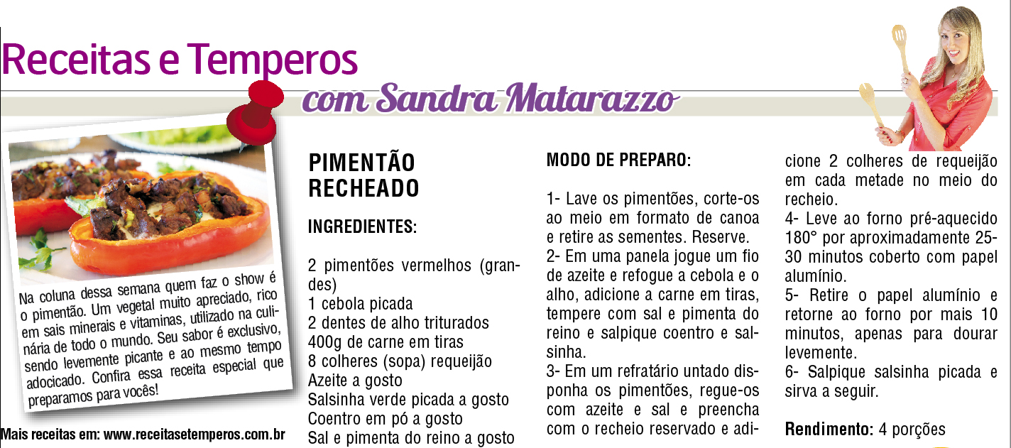 Confira as receitas criadas pelo Receitas e Temperos com a chef Sandra Matarazzo para a coluna de gastronomia do jornal Visão Oeste SP neste mês de outubro de 2013.Você não pode perder essas delícias!