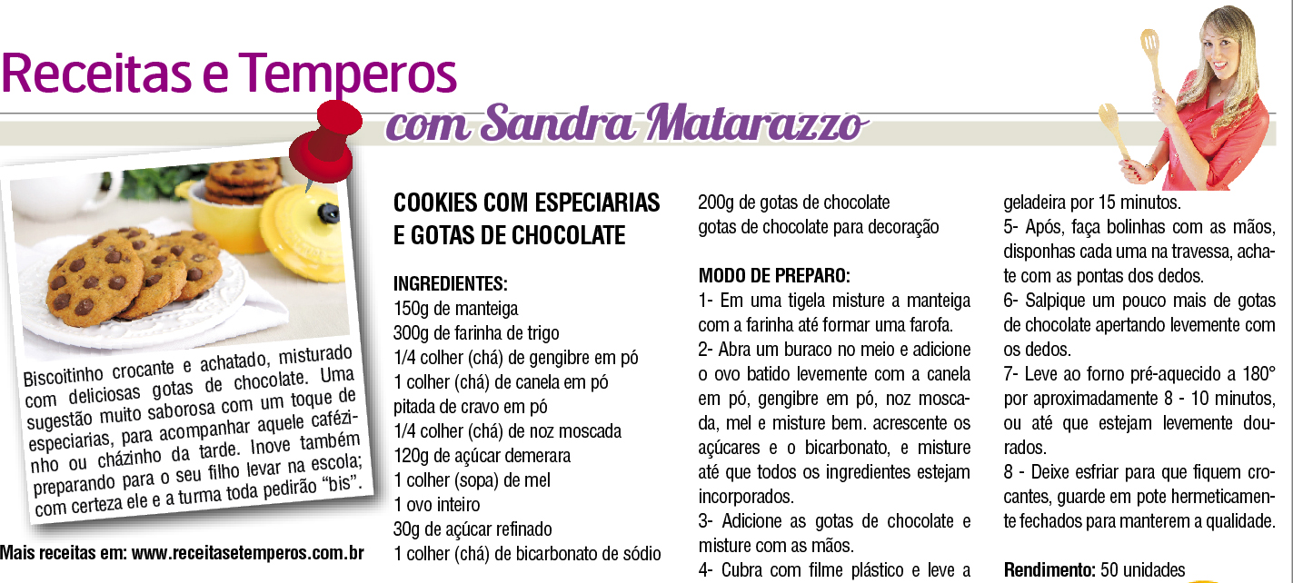 Veja a receita completa: Cookies com especiarias e gotas de chocolate