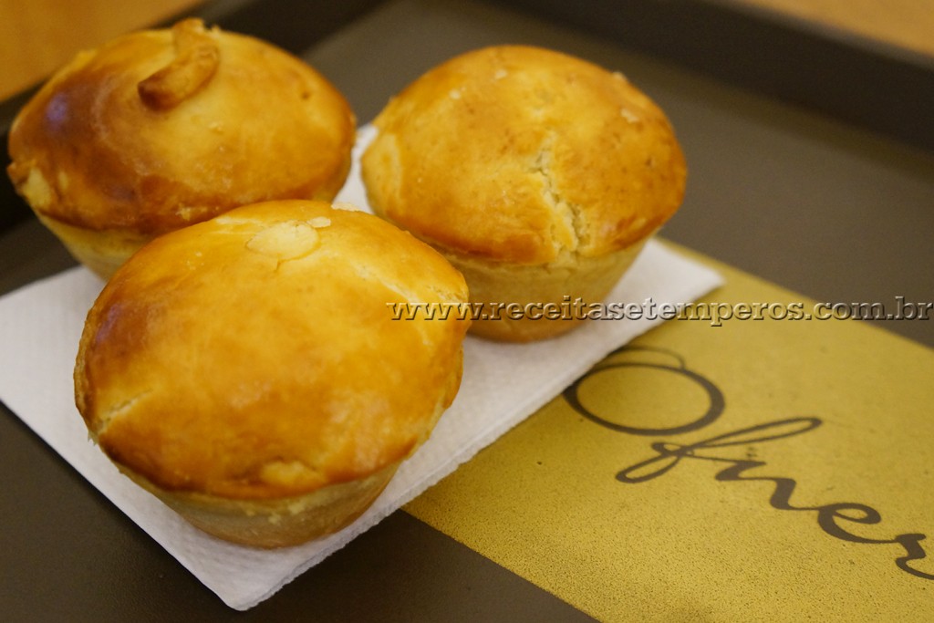 Também tem as empadinhas… com uma massa leve que desmancha na boca. São vários sabores deliciosos, mas a de frango é minha preferida!