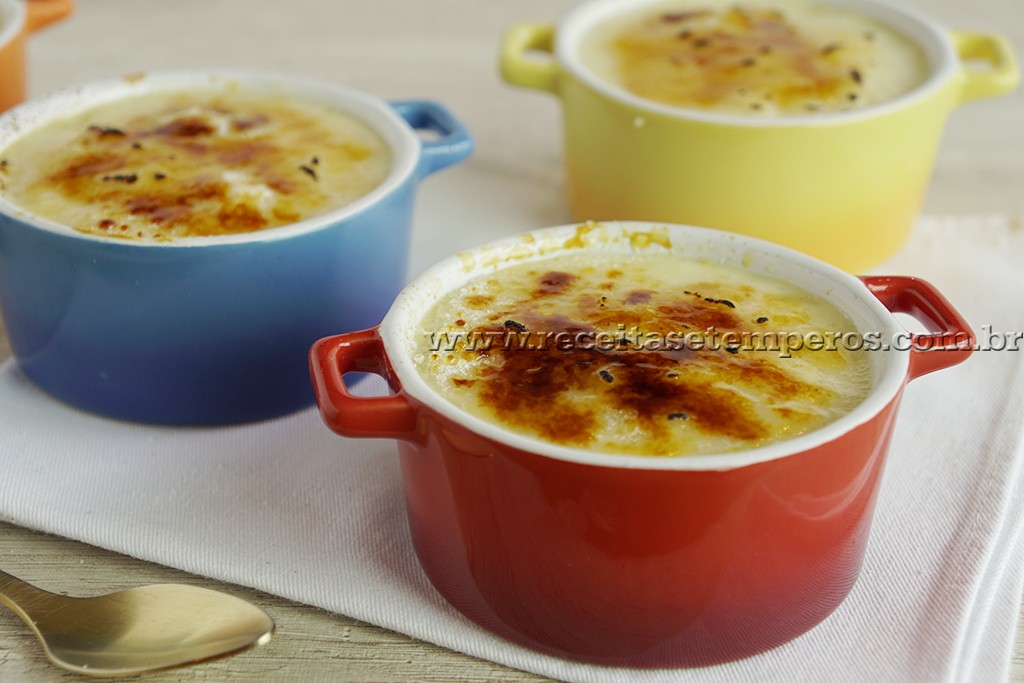 - Na hora de servir coloque açúcar refinado na superfície do doce e queime com o maçarico para formar a casquinha crocante.