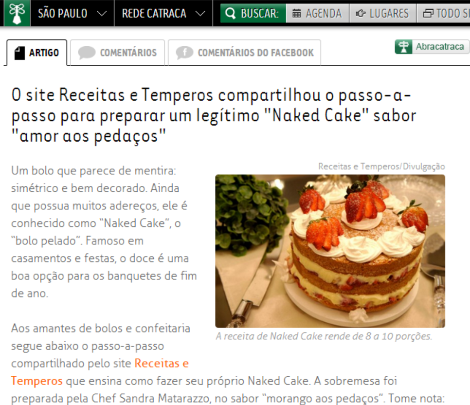 O Receitas e Temperos apareceu no site Catraca Livre com a receita especial de Naked Cake morango aos pedaços.